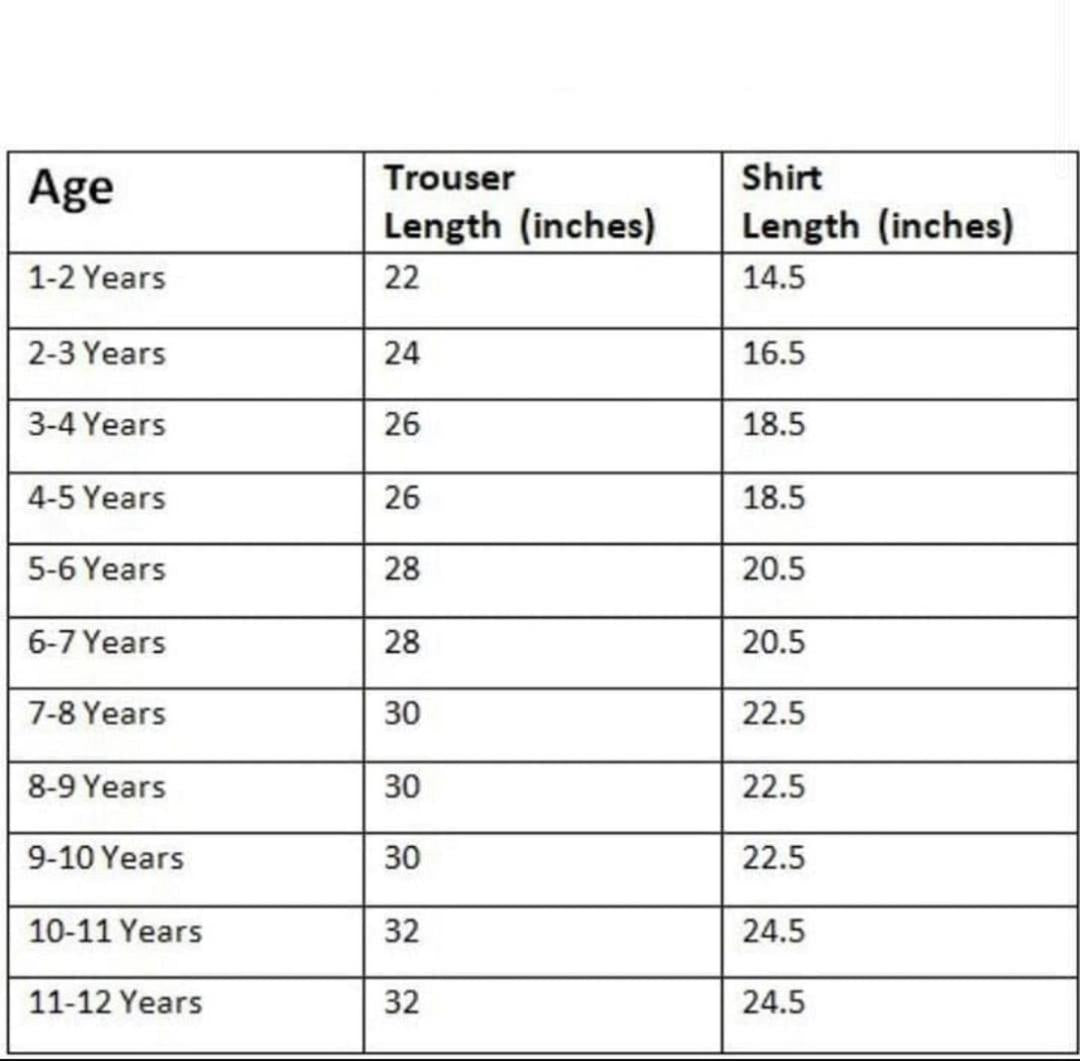 Available Sizes: 3-4 Years, 5-6 Years, 7-8 Years, 9-10 Years, 11-12 Years